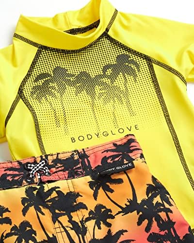 OFFICIALLY LICENSED BODY GLOVE: Toddler Boys’ 2 Piece Rash Guard Set with Short Sleeve Swim Shirt and Bathing Suit Trunks; Inspired by all things water, we’re dedicated to supporting people’s passions in and out of the water with quality athletic apparel
