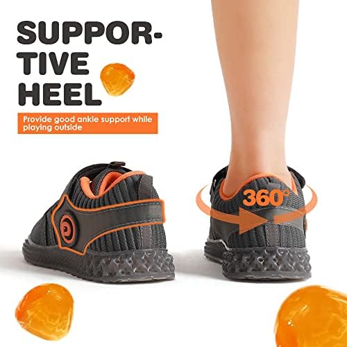 Anti-Slip Outsole: Enjoy stability and ease with the flocked texture outsole. These kids tennis shoes allow your kids to play happily and securely.