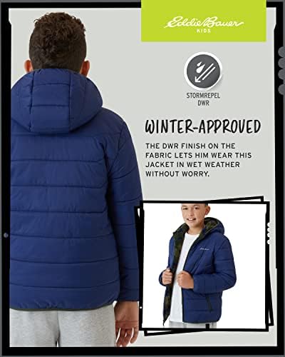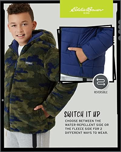 OFFICIALLY LICENSED EDDIE BAUER: Waterproof Quilted Puffer Jacket Raincoat with Reversible Sherpa Fur Lining; Eddie Bauer combines its adventure-driven innovation with even more sustainability and inclusivity, using materials and methods that minimize impact, and building an outdoor culture open to everyone
