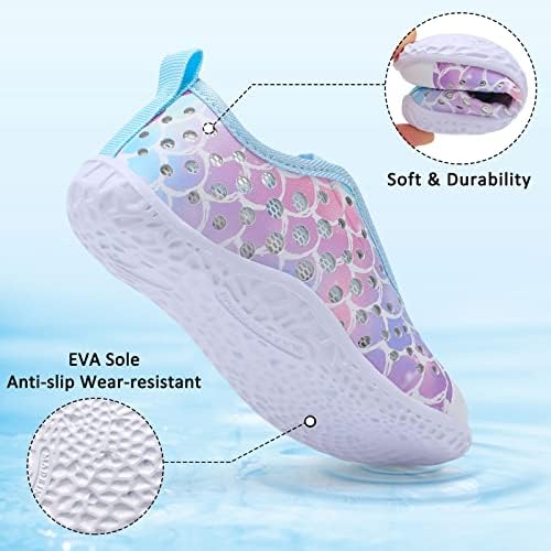 Non-slip: EVA sole has good grip and protects the foot from sharp objects. The kids water shoes sole is flexible, providing good support for the foot. Soft perforated insoles absorb shock, reduce muscle fatigue in feet, and provide excellent shock absorption.