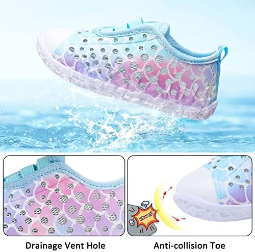 Breathable Upper: Kids water shoes Upper adopt ventilated perforated design, quick drainage and cross ventilation, keep kid’s feet comfortable and dry, reduce odor. Soft and wear-resistant, the toddler water shoes have a skin-friendly mesh lining to protect feet from rocks, branches and sharp objects.