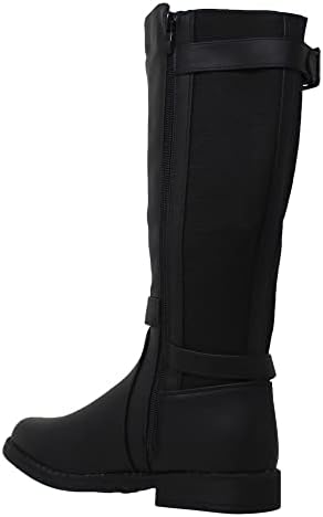 Material: Man-made leather upper, rubber sole. Features: Full-length side zipper closure, double straps buckle, elastics back. Boot opening – 13.39 in approx; Boot Shaft height – 12.20 in approx; Outsole Length – 9.45 for a Big Kids Size 4