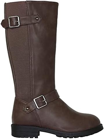 Material: Man-made leather upper, rubber sole. Features: Full-length side zipper closure, double straps buckle, elastics back. Boot opening – 13.39 in approx; Boot Shaft height – 12.20 in approx; Outsole Length – 9.45 for a Big Kids Size 4