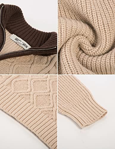 GRACE KARIN Boys Cable Knit Turtleneck Sweater 1/4 Zip-up Pullover for Kids