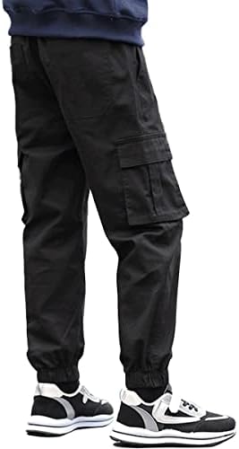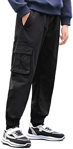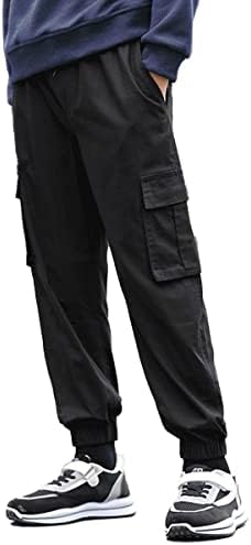 KGYA Boy’s Cargo Pants Drawstring Elastic Waist Joggers Cotton Twill Jogging School Trousers with 6 Pockets