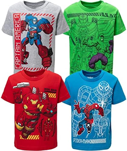 Marvel Avengers Mech Strike Spider-Man Hulk Iron Man 4 Pack Graphic T-Shirts Toddler to Big Kid