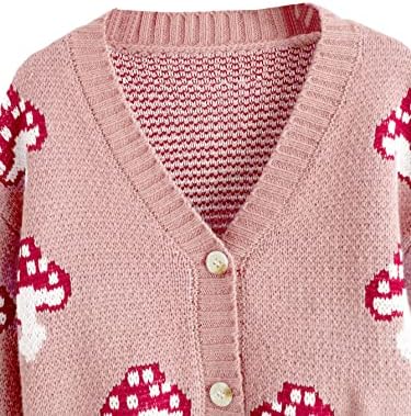 Features: Long sleeve, V neck, drop shoulder, cute pattern, button down, elastic hem, causal stretchy cardigan for girls